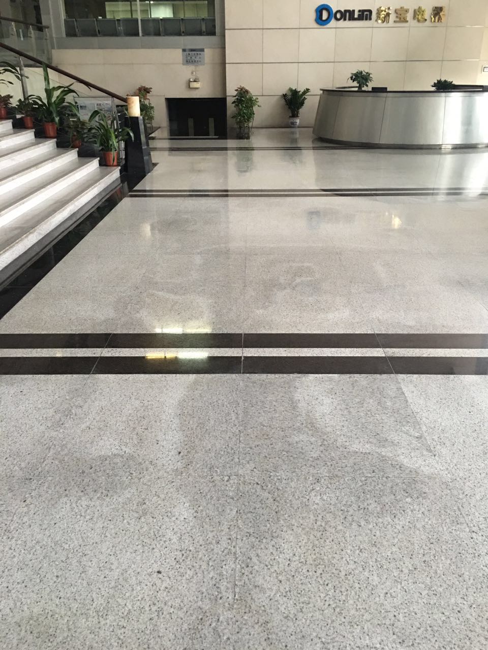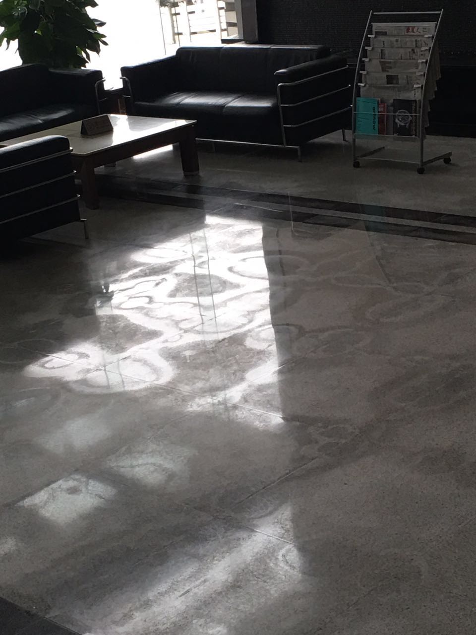 佛山市恒美清潔服務有限公司經過現場勘查 發現佛山市新寶電器有限公司大堂石材翻新工程主要存在以下問題: