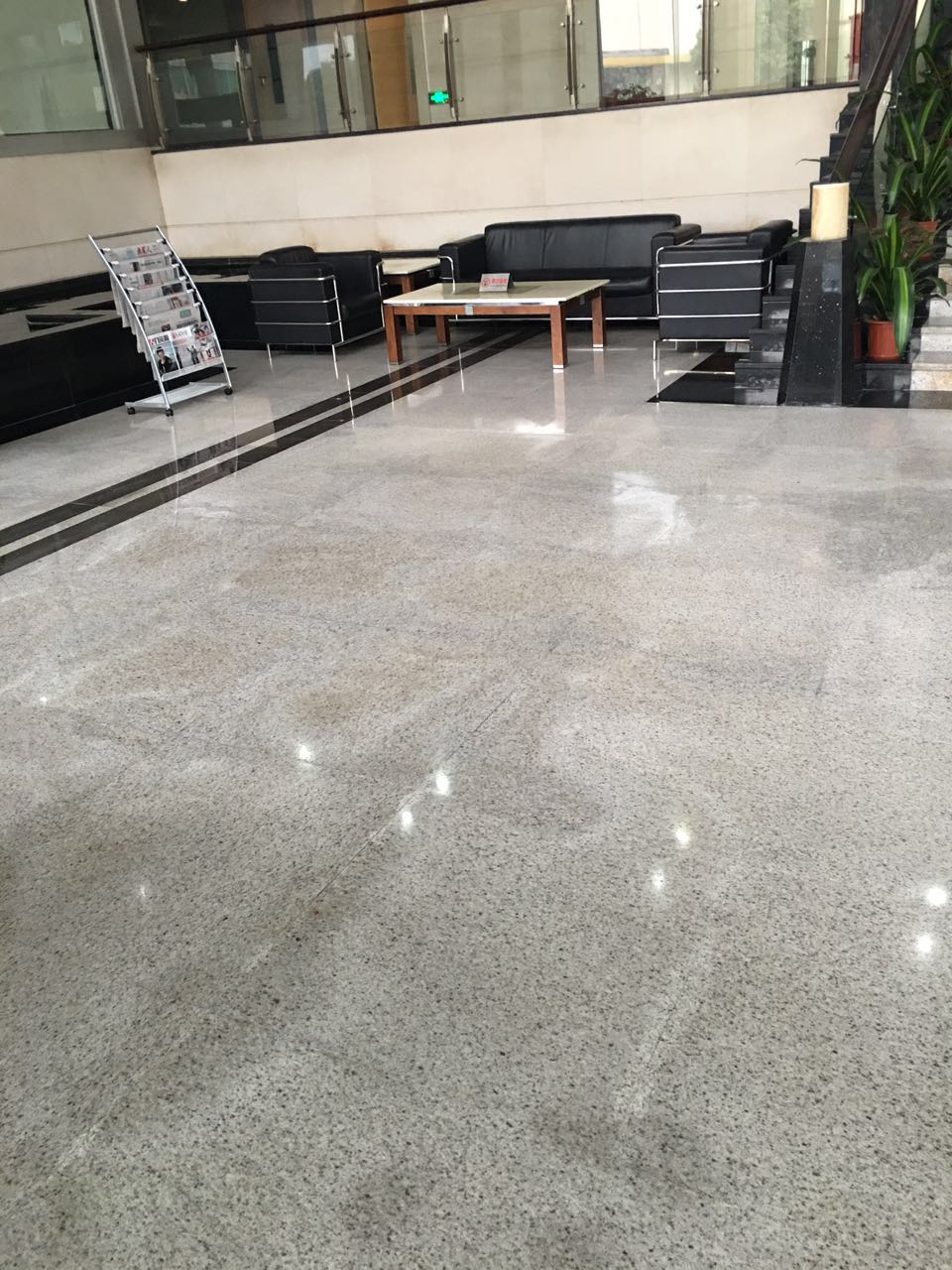 進行石材地面結晶處理之前,鋪貼完成面整體平整,無色差,每塊石材之間對角平齊,地面進行整體的清理,用干燥清潔的地拖清理干凈,地面無沙粒、雜質。